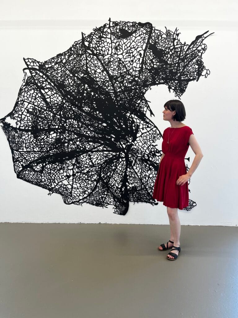 Ausschneiden mit dem Skalpell, die neu Organisation von pflanzlichen Elementen, das Perforieren des Papiers – Meine Arbeit ist ein meditativer, minutiöser und präziser Prozess bei dem sich die Form nach und nach aus dem Material heraus entwickelt. Die entstandenen Zwischenräume lassen sowohl Luft als auch Licht Teile des Werkes werden. Der Umraum wird von Schatten belebt und somit selbst zum Werk.